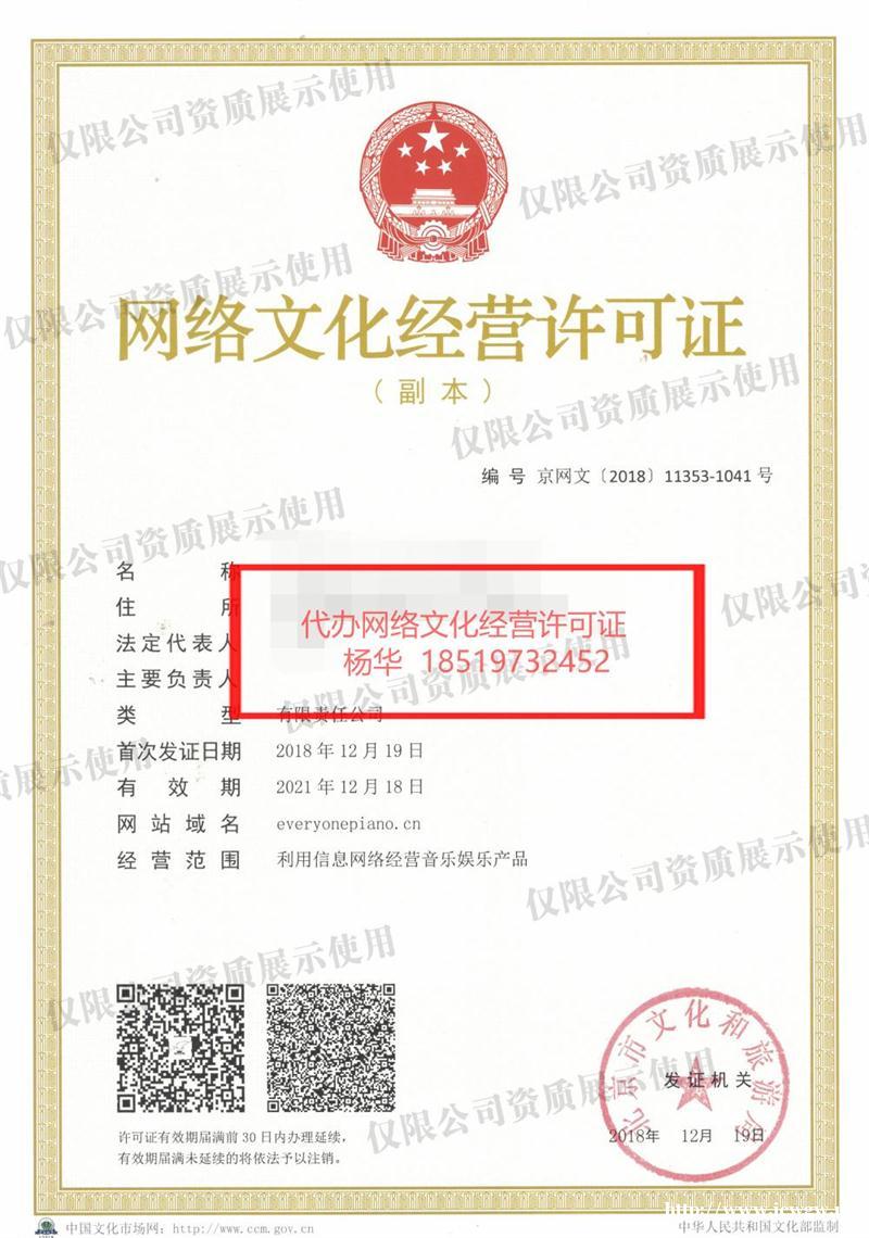 我公司专业办理各种互联网资质证书:ICP资质,网文,广播许可证,营业性演出许可证等资质证书,另有带相关资质的空壳公司转让,天津,杭州,北京,海南等相关地区的空壳公司,欢迎咨询。 联系我时,请说是在季晨网看到的,谢谢!